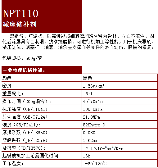 NPT-110減磨修補劑,其性能為: